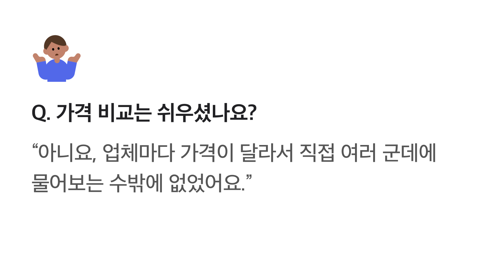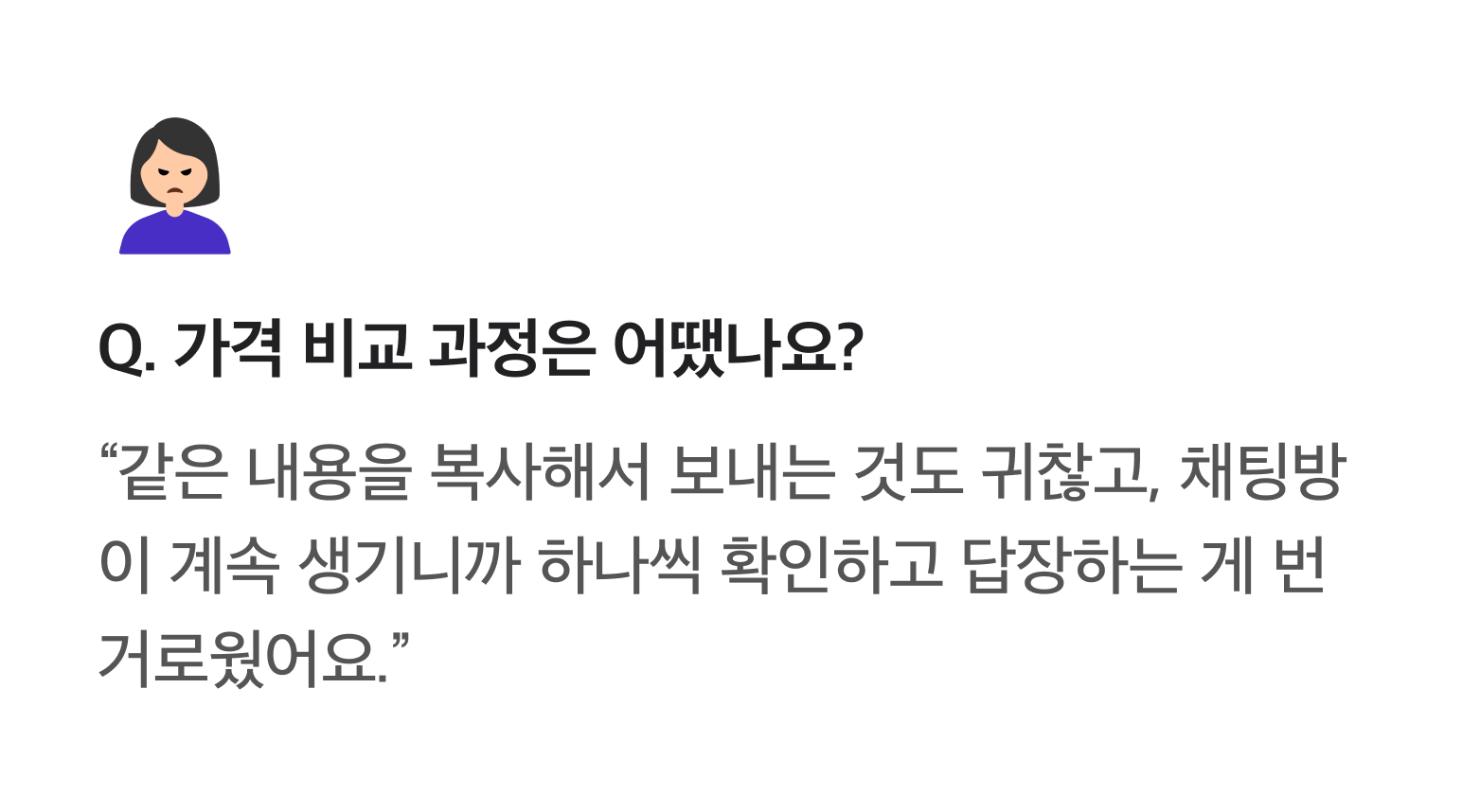 사용자들은 동일한 내용을 여러 업체에 반복 문의해야 하는 불편을 겪음