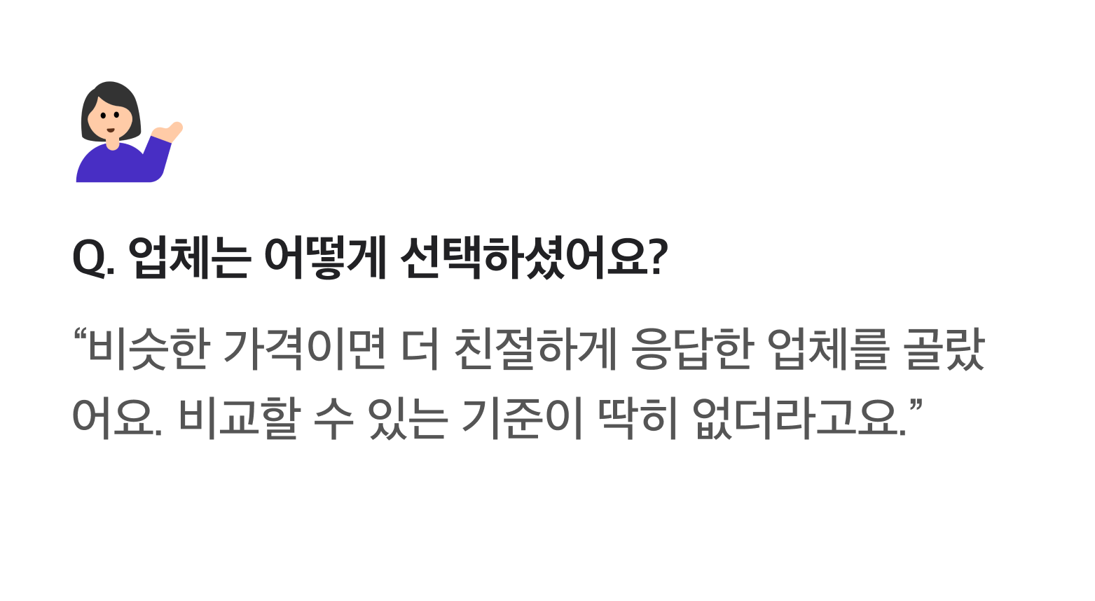 생활 서비스(운송, 수리, 인테리어 등) 업종의 가격 편차가 크고, 견적 비교 과정이 번거로움