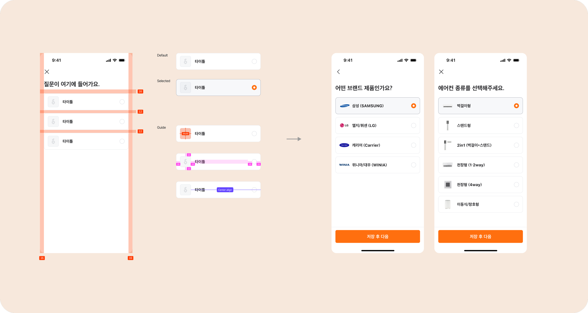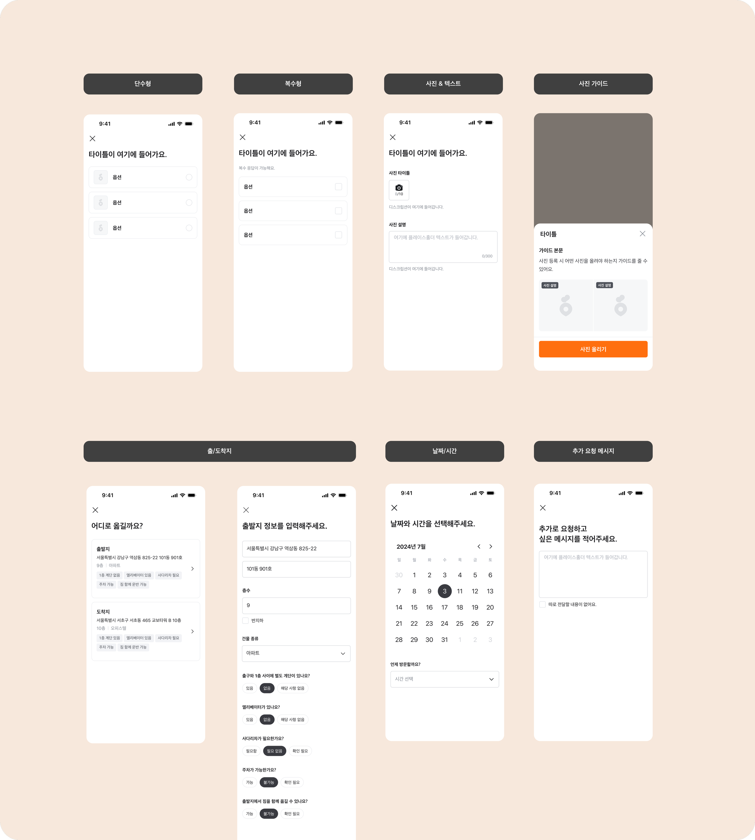 공통적으로 사용되는 UI 컴포넌트들을 모듈화하여, 유사한 UX 흐름에서 반복적으로 활용할 수 있도록 설계했습니다. 각 기능이 독립적으로 작동하면서도 일관된 사용자 경험을 제공할 수 있도록 구조화했습니다.