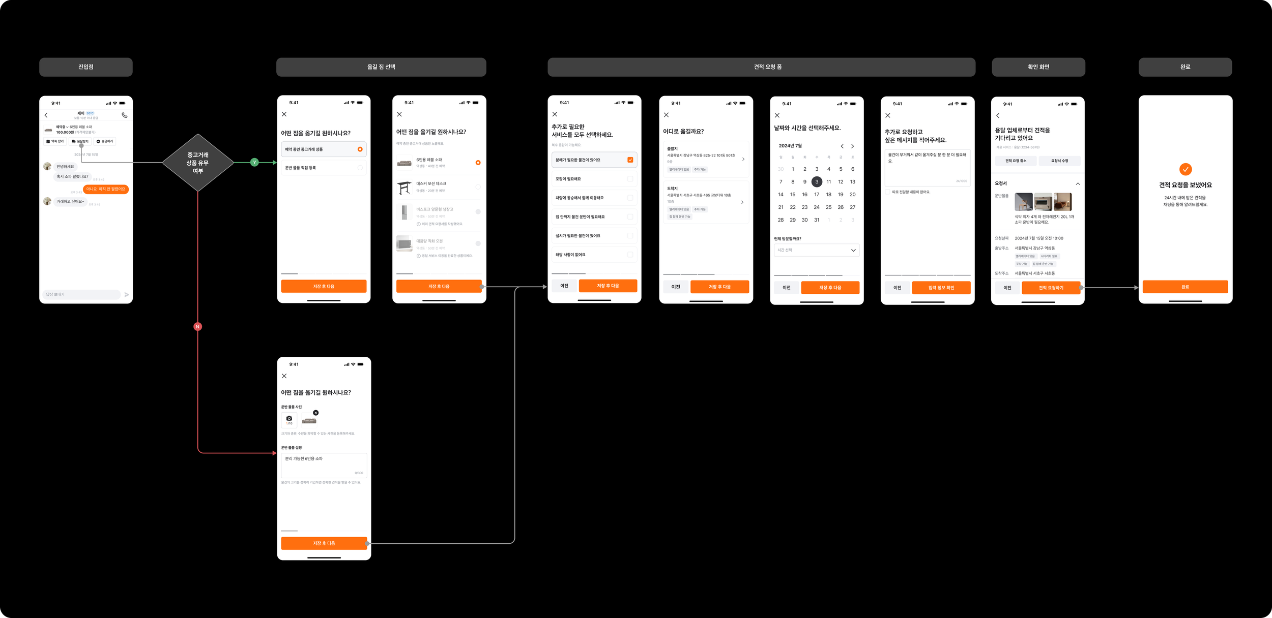 이후 이 경험을 바탕으로 이사, 청소, 수리, 인테리어 등 다양한 분야로 확장하며, 고객과 전문가를 더 쉽게 연결하는 방향으로 UX를 고도화하고 있습니다.