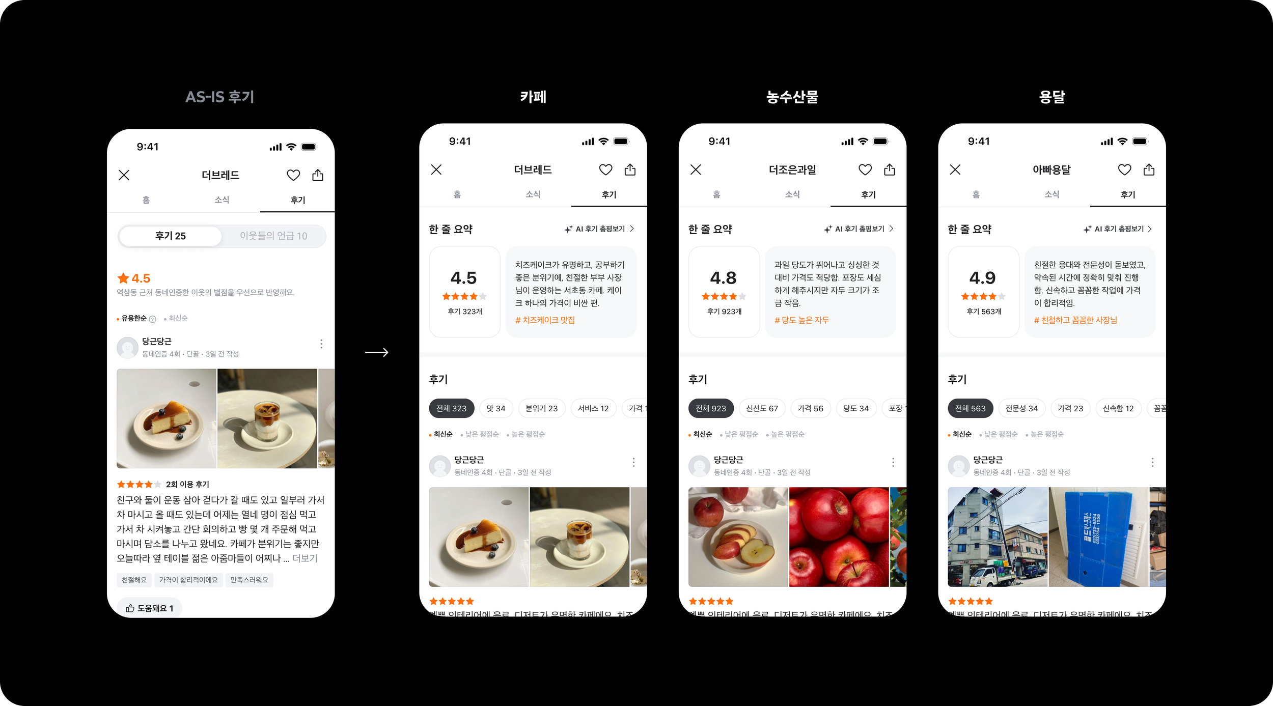 후기는 업체의 서비스 품질과 신뢰도를 평가하는 중요한 기준이자, 이웃과 지역을 따뜻하게 잇는 연결의 기록입니다. 그러나 유저 인터뷰를 통해, 당근의 후기로는 원하는 가게의 정성적인 특징을 한눈에 파악하기 어렵다는 점을 알 수 있었습니다.