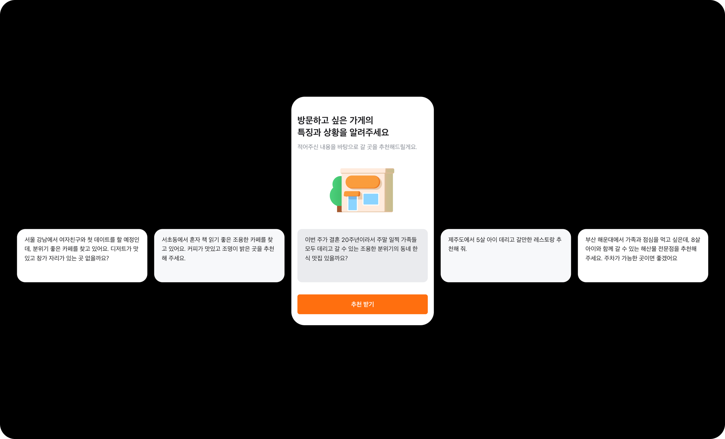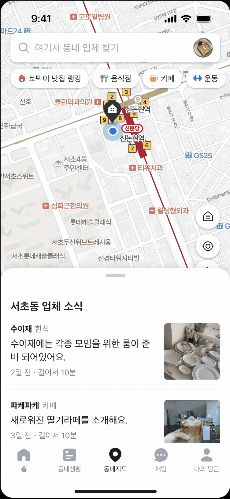 #주차가 편한", "#데이트하기 좋은" 같은 키워드를 기반으로 동네 가게를 큐레이션하여, 원하는 분위기와 조건에 맞는 장소를 쉽게 찾을 수 있습니다.