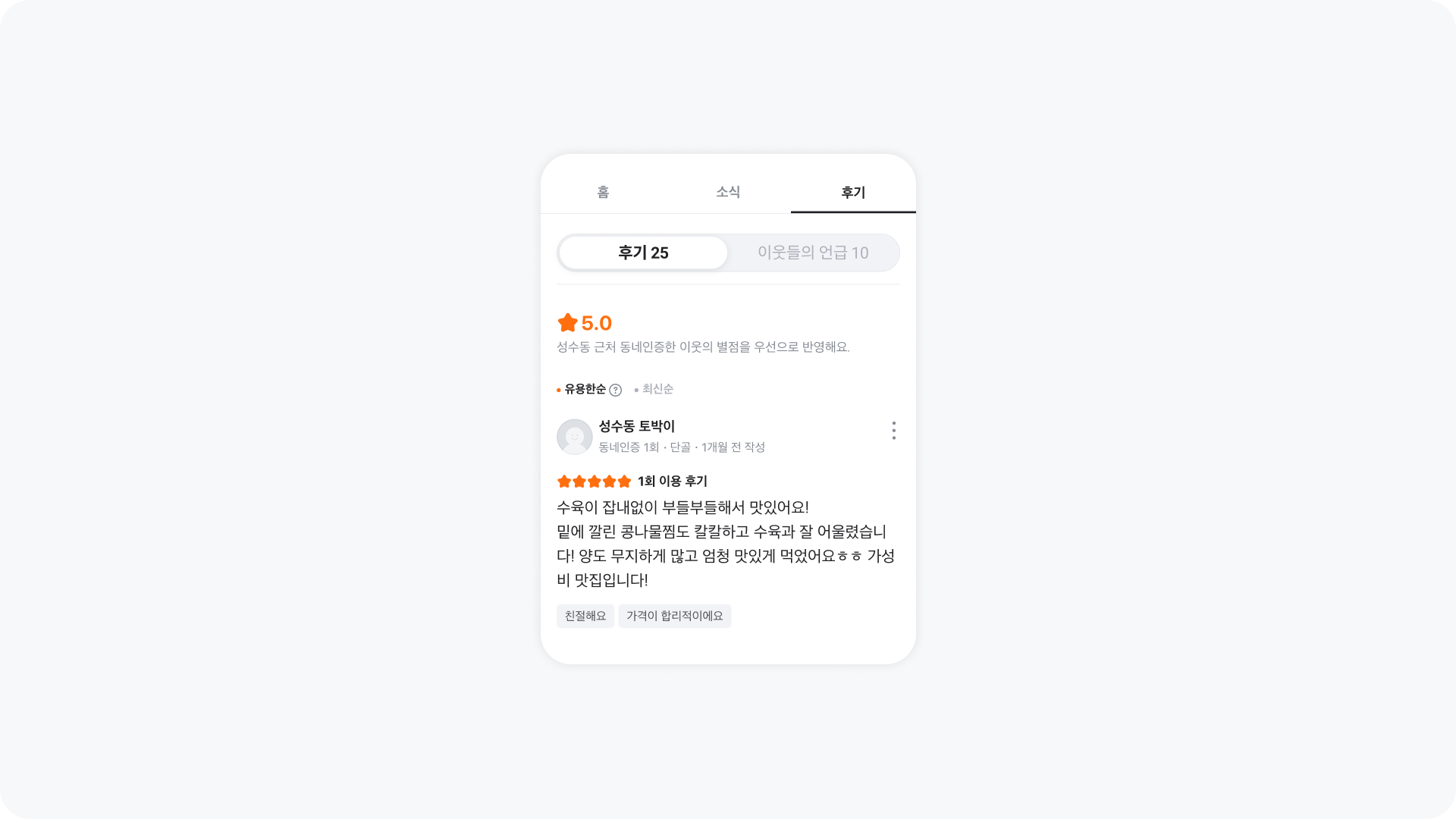 후기는 동네가게를 더욱 매력적으로 보이게 할 수 있는 요소입니다.