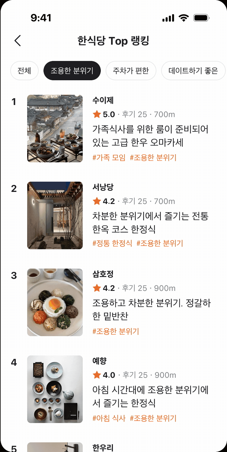 • 원하는 조건에 맞춰 가게의 특징을 빠르게 파악할 수 있어 검색과 탐색 경험 개선 기대