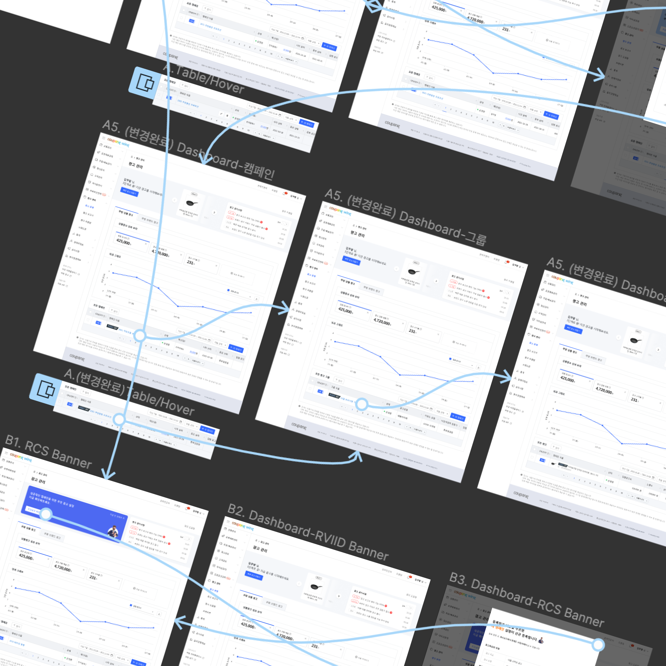 추천 광고 툴의 기초적인 골격을 그려 어떤 중요한 정보가 있고 어디로 이어지는지 서비스에 대한 구상을 구체화한 뒤, 기획자, 개발자 등 프로젝트에 참가하는 팀원들에게 의견을 받아 개선안을 도출했습니다.